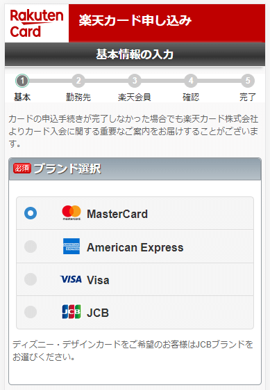 Bước 2: Chọn loại thẻ 「MasterCard」「American Express」「VISA」「JCB」