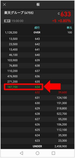 Trong trường hợp này, nếu bạn đặt hàng mua 100 cổ phiếu với giá 634 Yên, giao dịch sẽ ngay lập tức được thực hiện trong thời gian giao dịch.