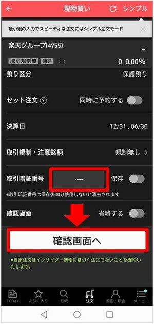 Sau khi nhập thông tin đặt hàng, hãy nhập mật khẩu giao dịch và nhấn “Đến màn hình xác nhận”.