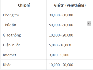 Với tổng chi phí khoảng từ 100,000 đến 200,000 yen/tháng, thêm cả tiền góp đóng học phi thì mỗi tháng bạn phải kiếm được tầm 15man đổ lên