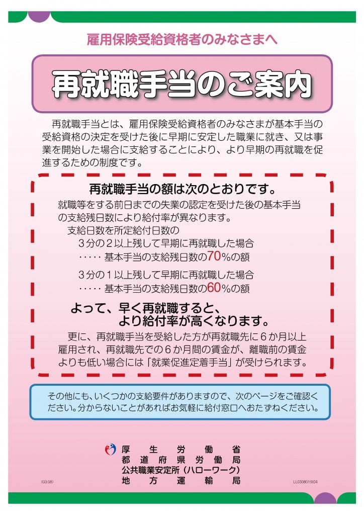 Trợ cấp nếu bạn xin được viêc sớm 再就職手当