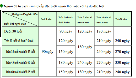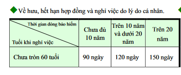 (2) Số ngày trợ cấp TỐI ĐA được tính dựa trên số tuổi và lí do nghỉ việc